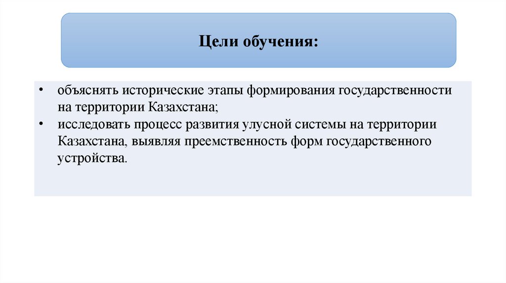 Цели обучения:• объяснять исторические этапы формирования государственности