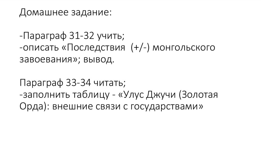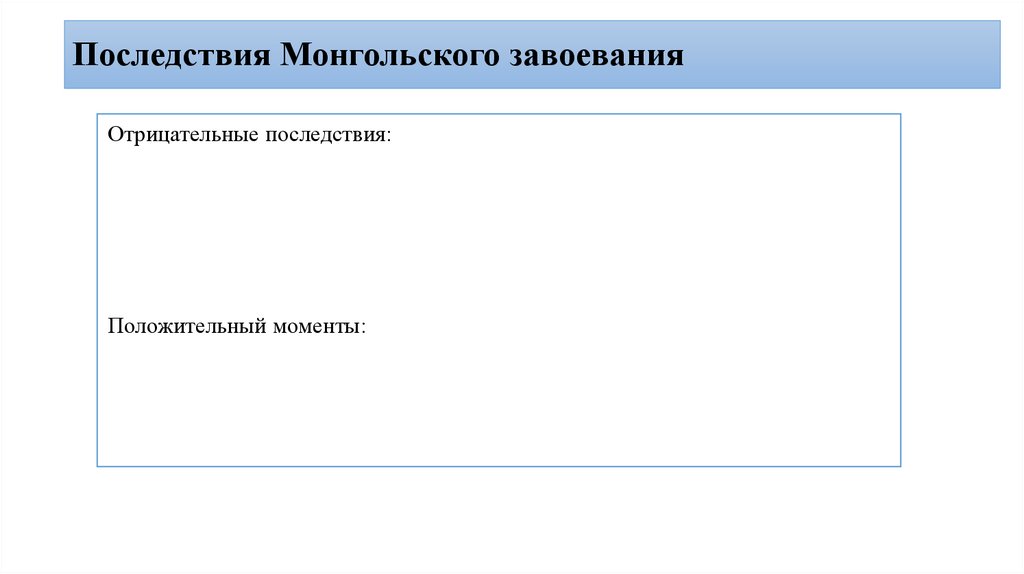 -описать «Последствия (+/-) монгольского