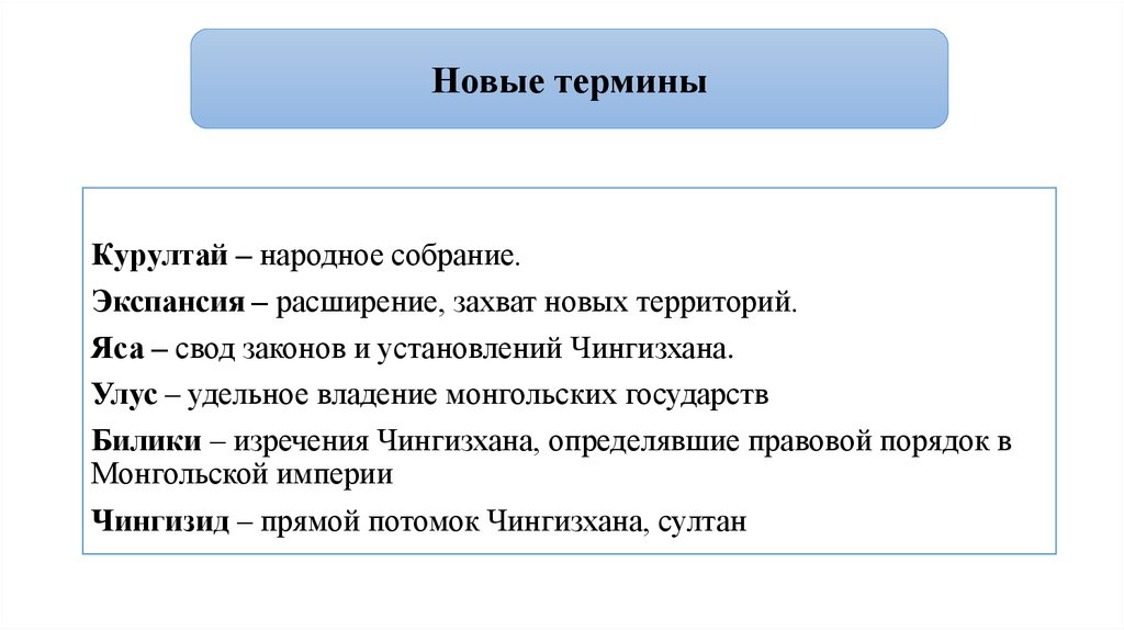Новые терминыКурултай – народное собрание.