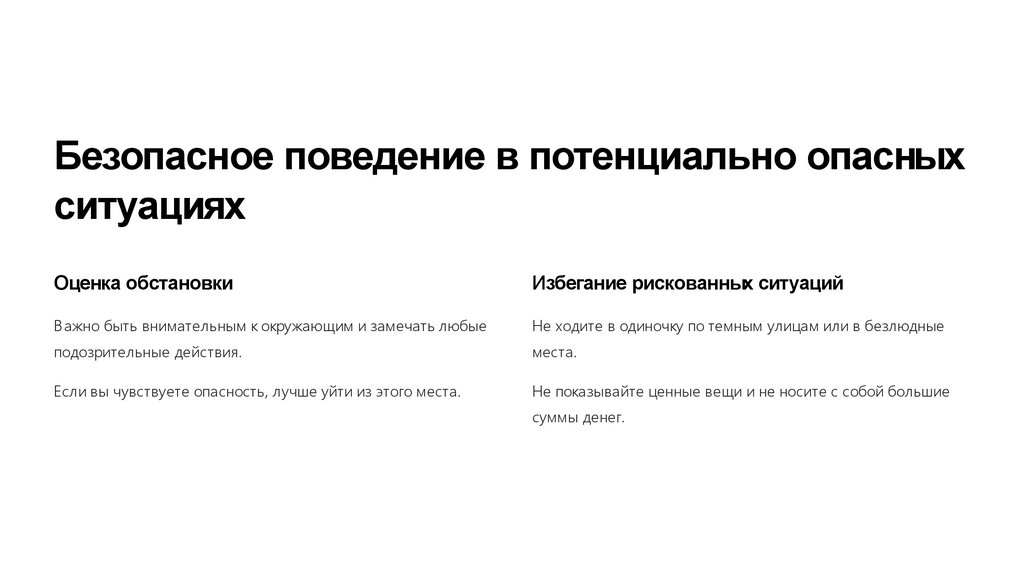 Безопасное поведение в потенциально опасныхситуациях