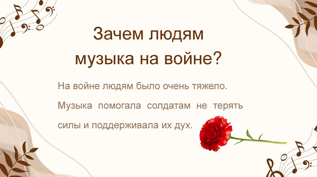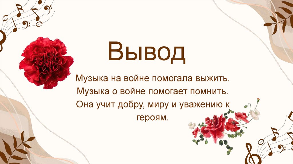 ВыводМузыка на войне помогала выжить.