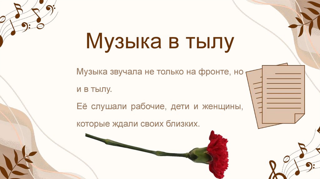 Музыка в тылуМузыка звучала не только на фронте, но