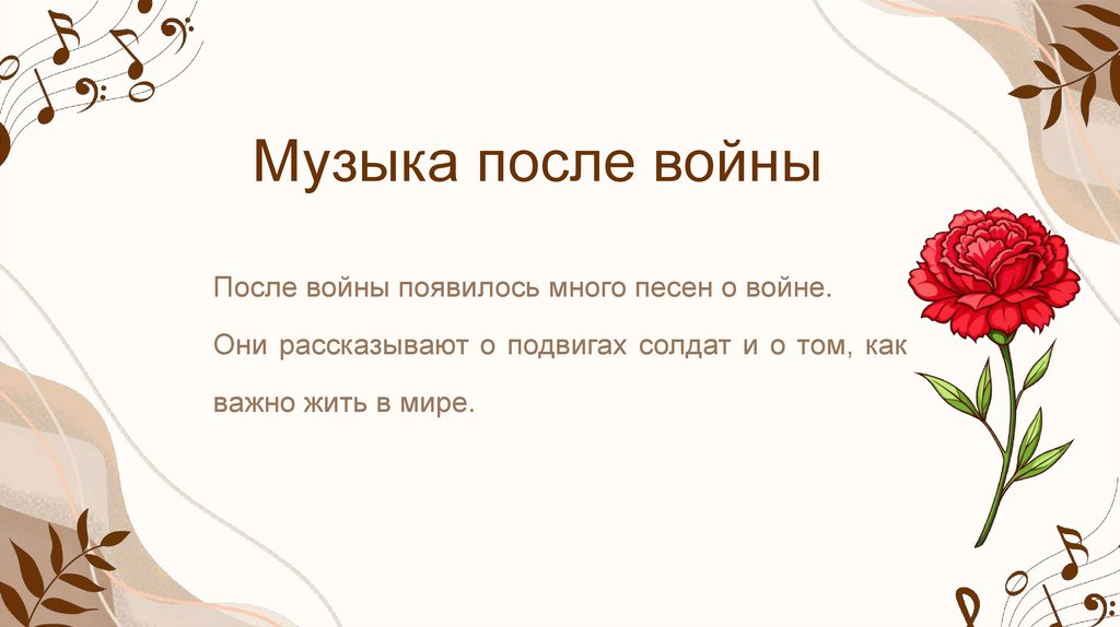 Музыка после войныПосле войны появилось много песен о войне.