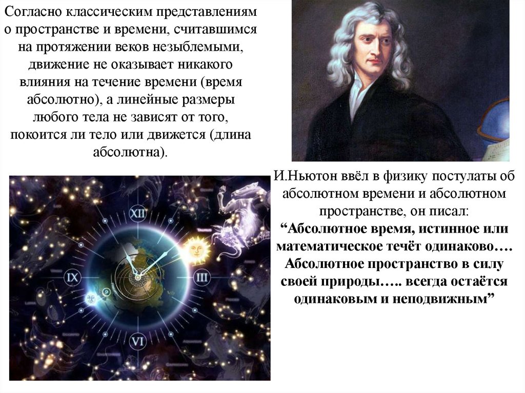 Согласно классическим представлениямо пространстве и времени, считавшимся