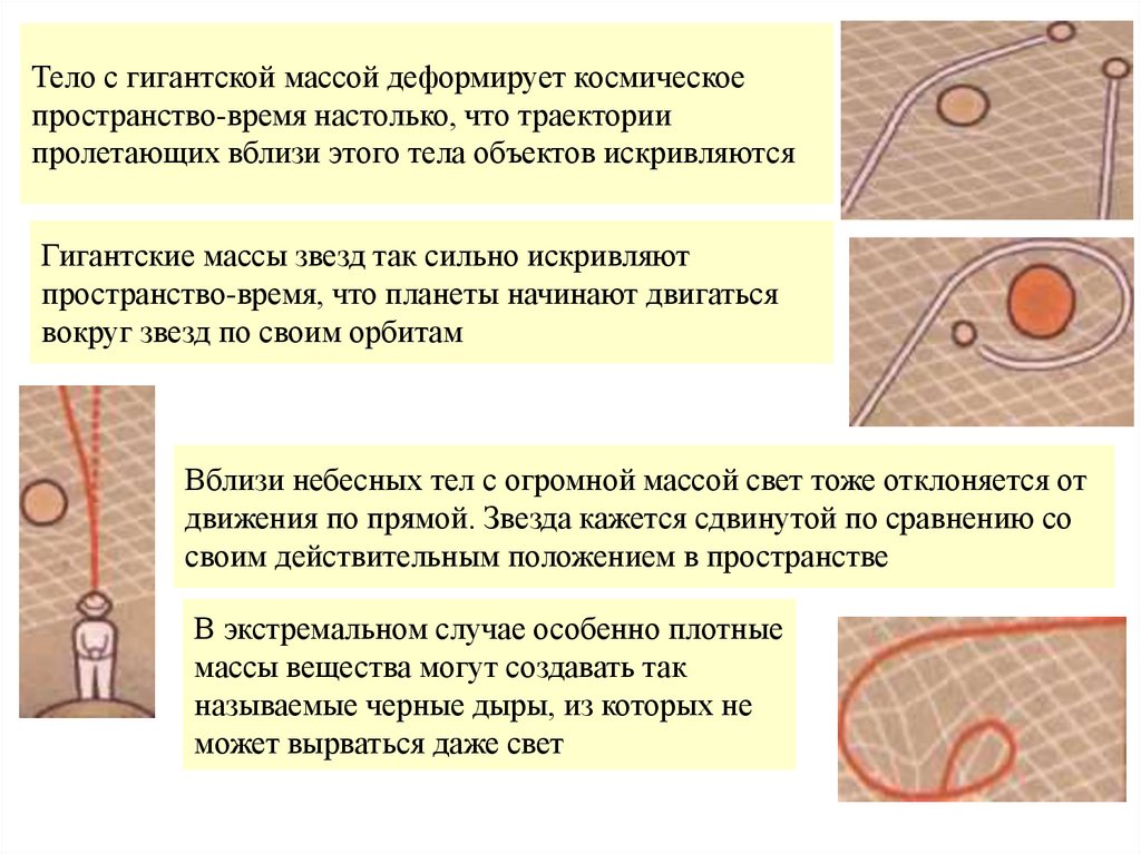 Тело с гигантской массой деформирует космическоепространство-время настолько, что траектории