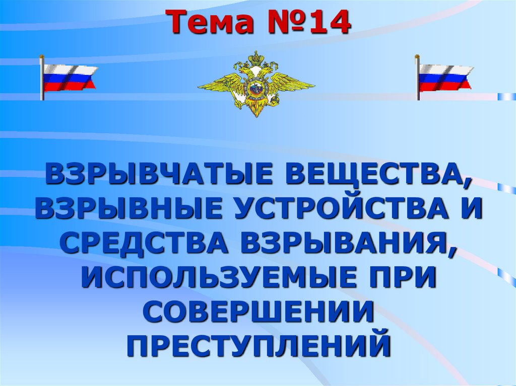 Тема №14ВЗРЫВЧАТЫЕ ВЕЩЕСТВА,
