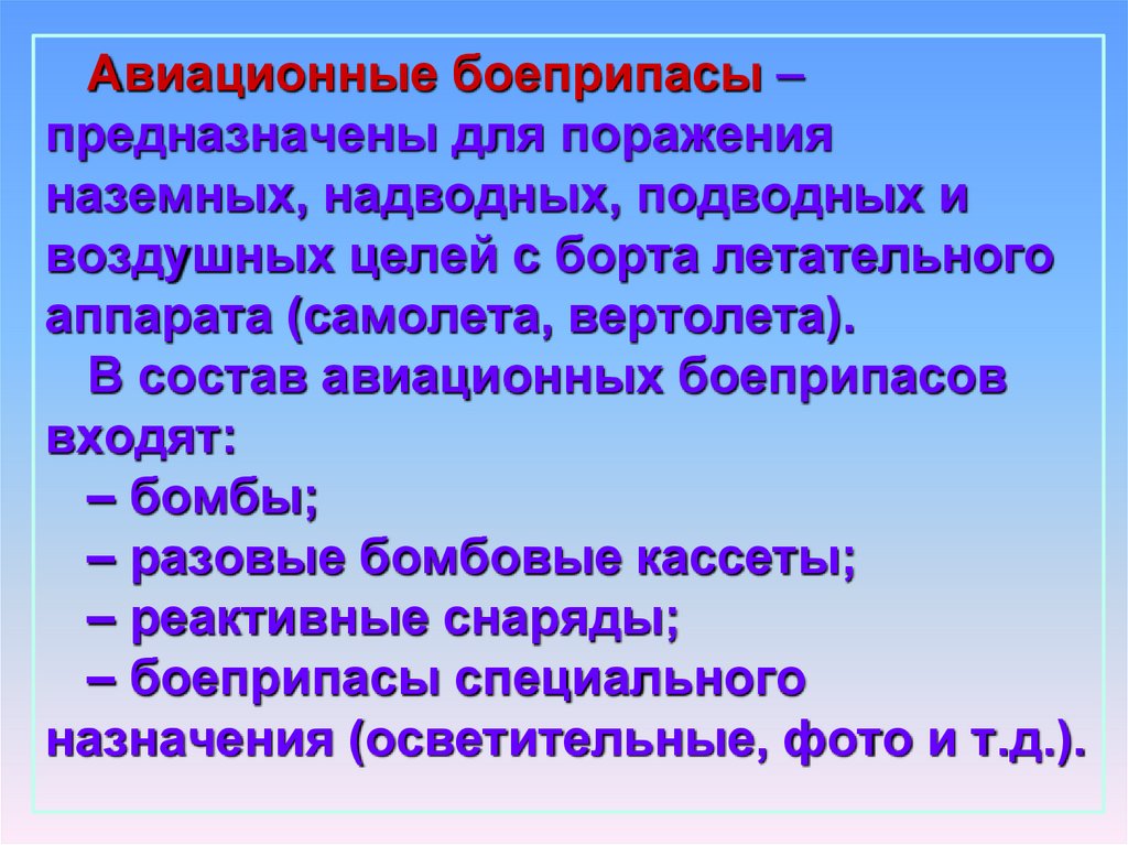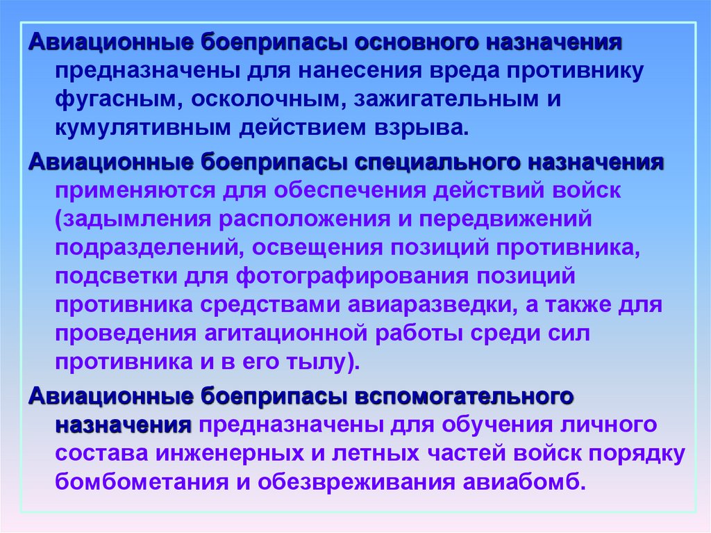 Авиационные боеприпасы основного назначенияпредназначены для нанесения вреда противнику