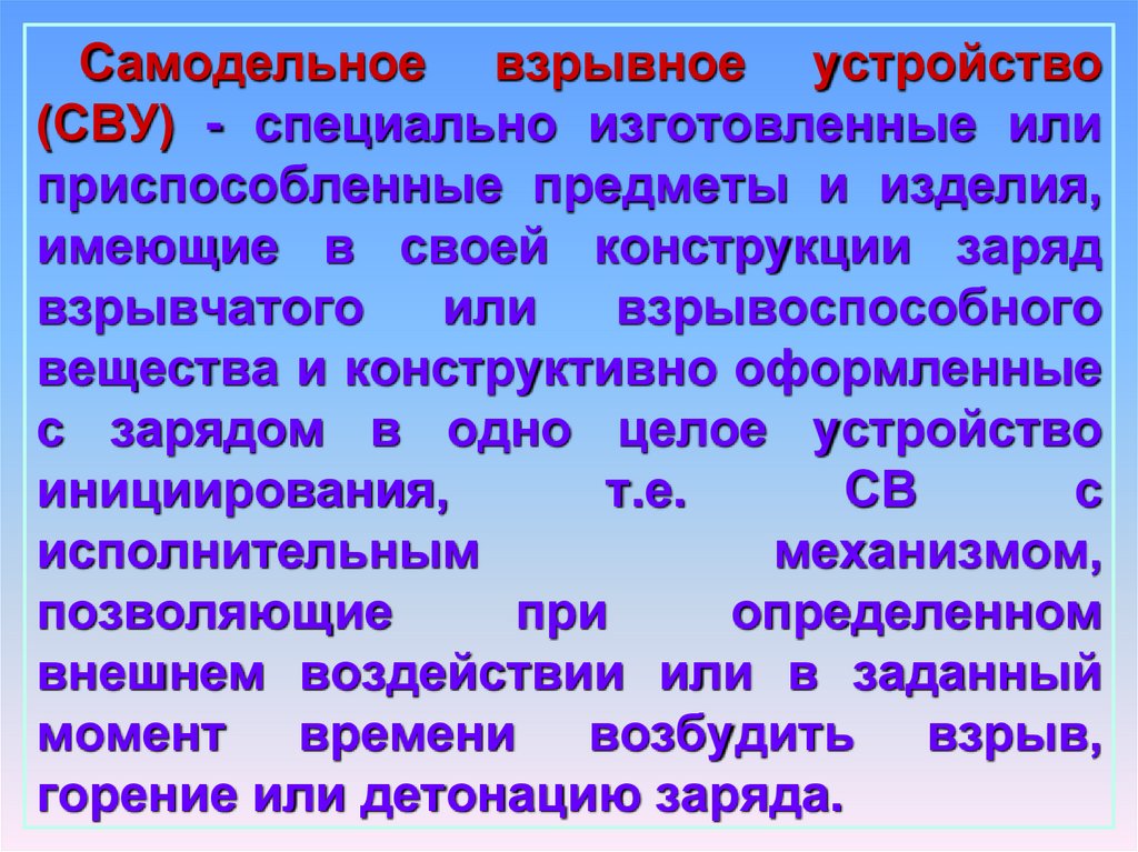 Самодельное взрывное устройство(СВУ) - специально изготовленные или