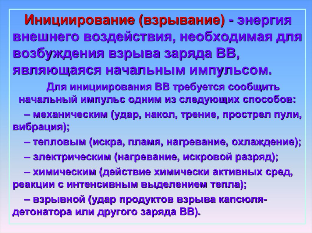 Инициирование (взрывание) - энергиявнешнего воздействия, необходимая для