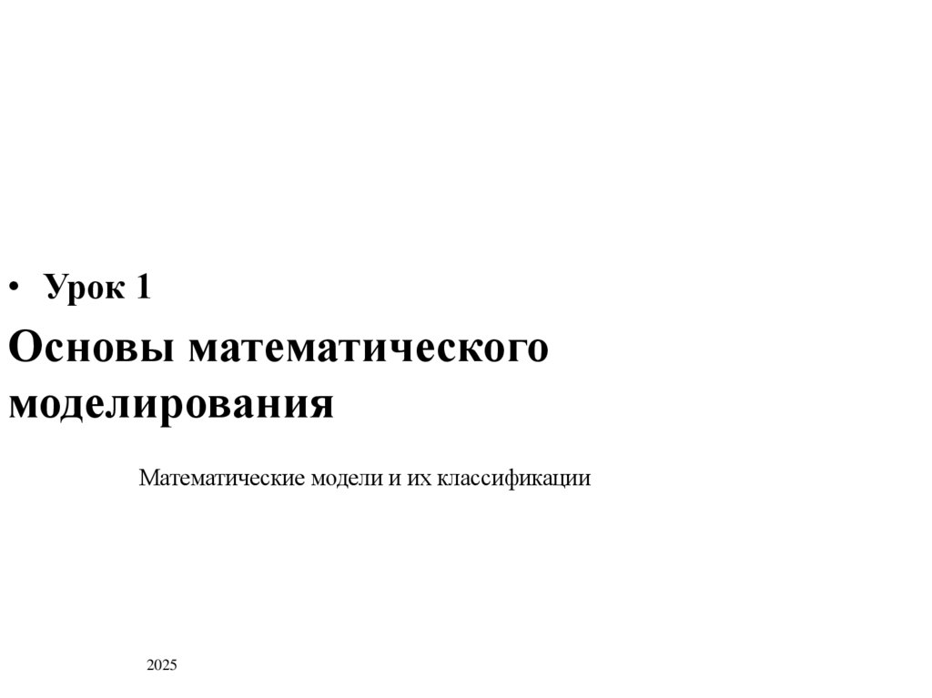 • Классификация математических моделей.