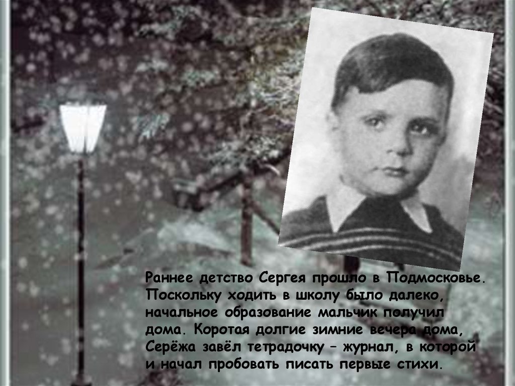 Раннее детство Сергея прошло в Подмосковье.Поскольку ходить в школу было далеко,
