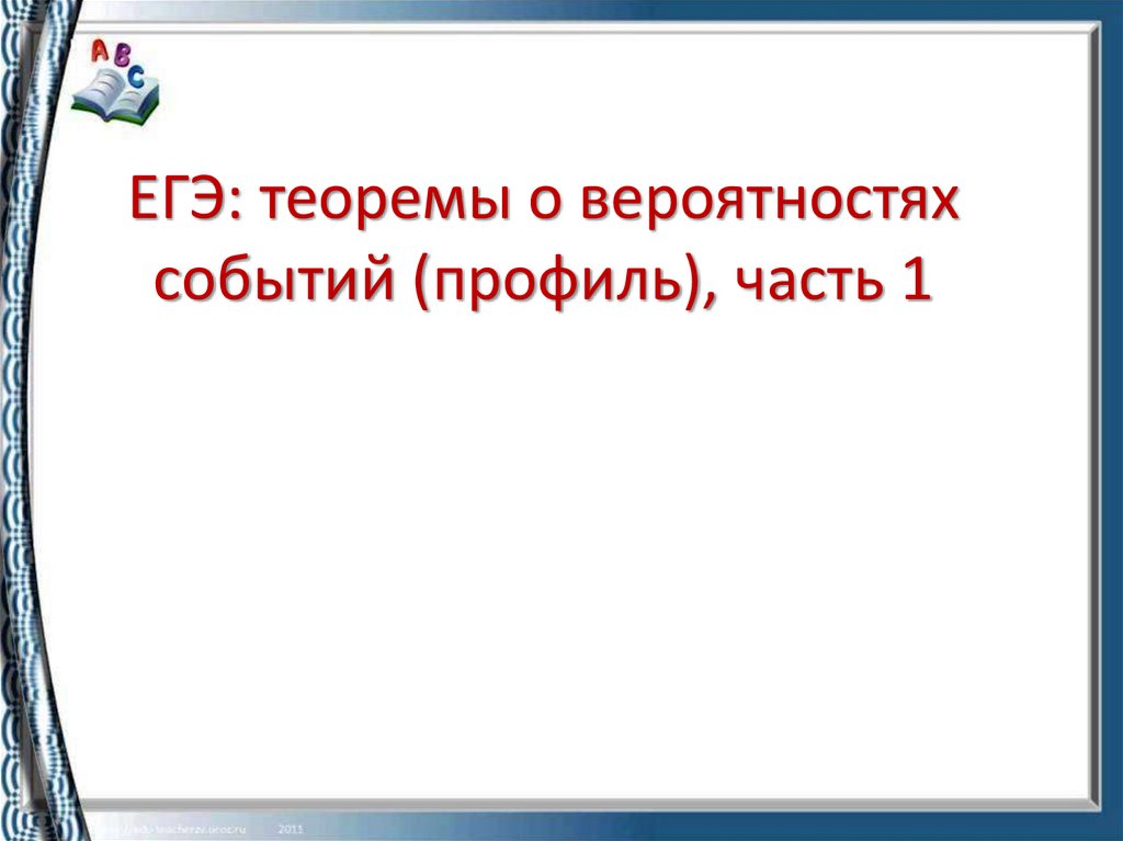 1. ЕГЭ: теоремы о вероятностях событий (профиль), часть 1