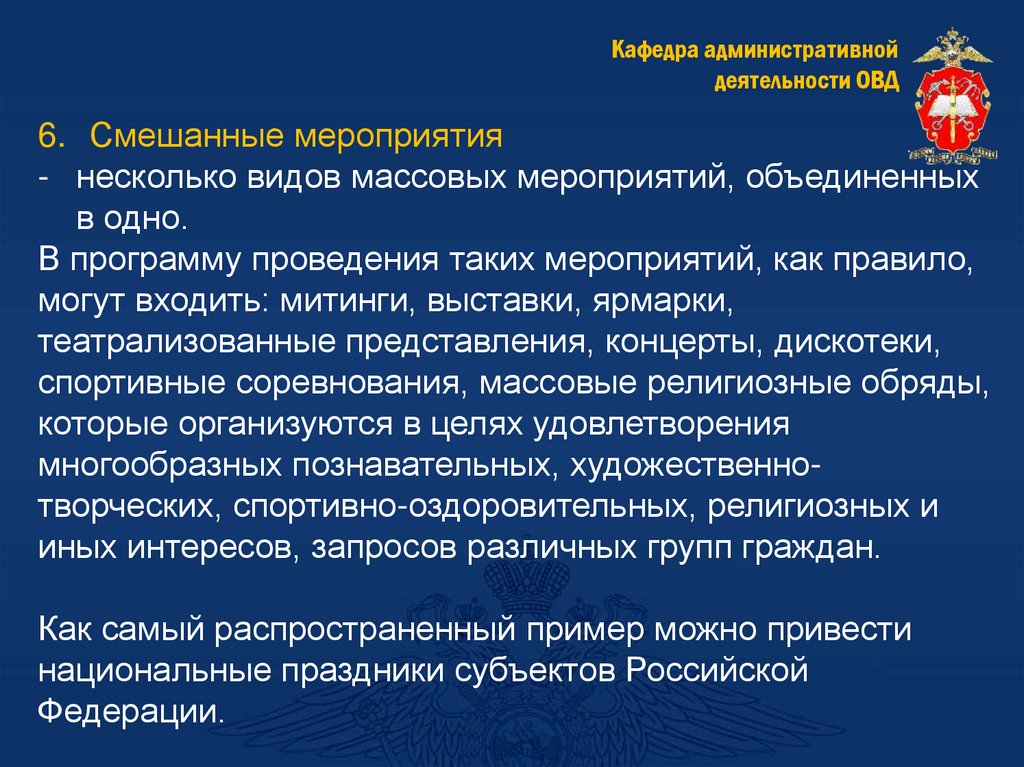публичных и массовых мероприятий».