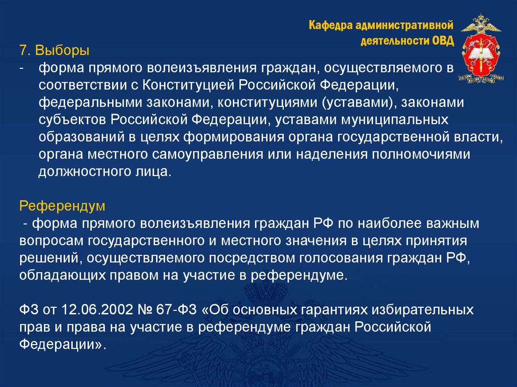Кафедра административнойдеятельности ОВД