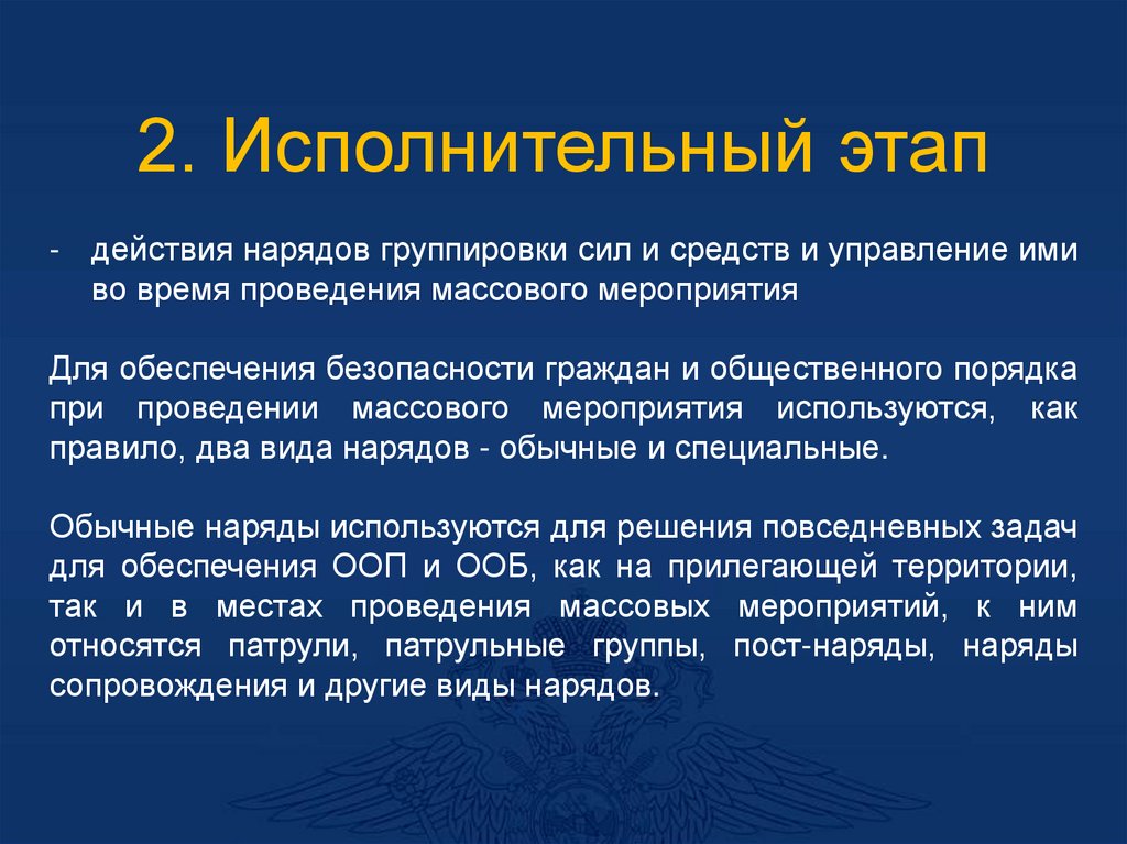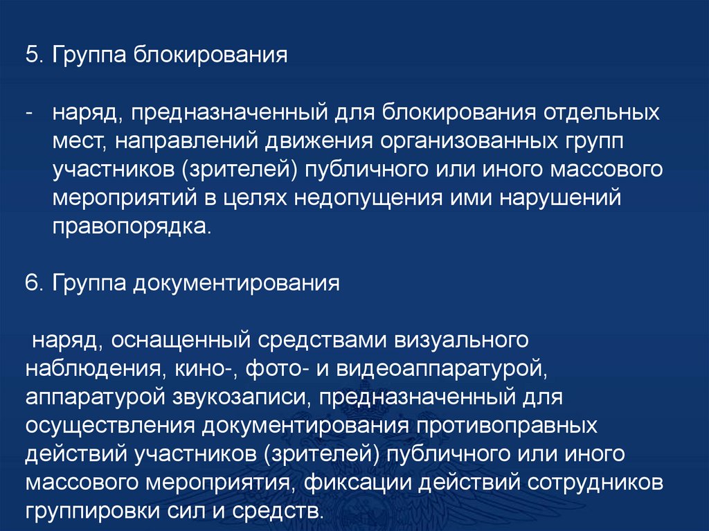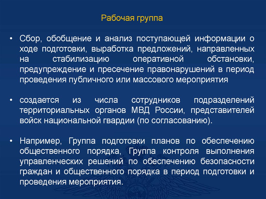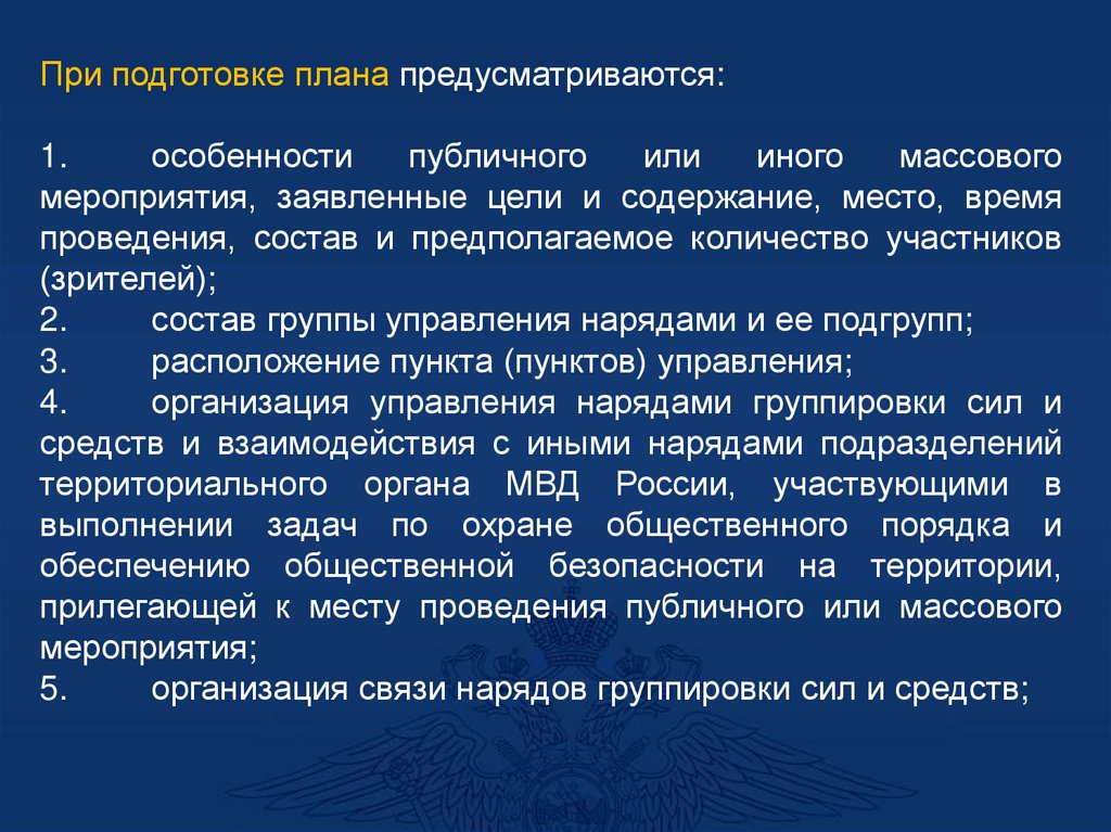 - При необходимости организуется работа нарядовсопровождения, патрульных групп и экипажей