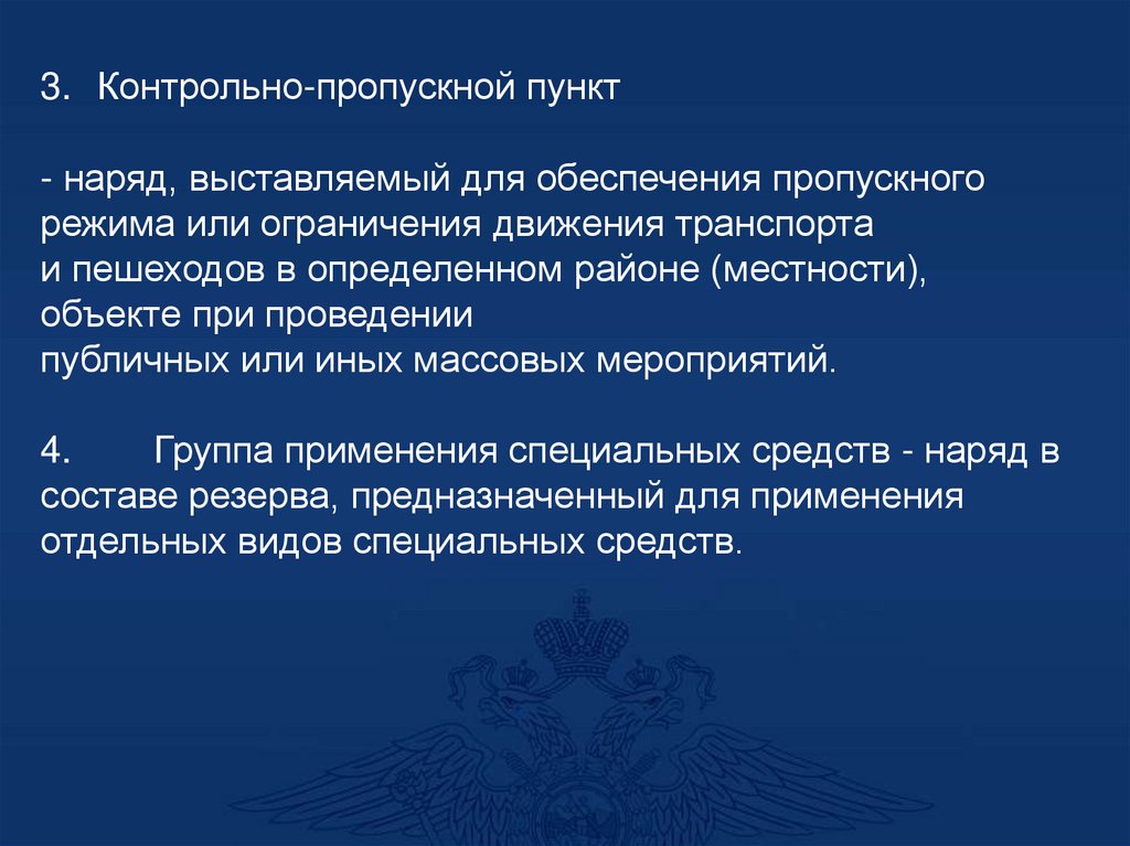 3. Контрольно-пропускной пункт- наряд, выставляемый для обеспечения пропускного