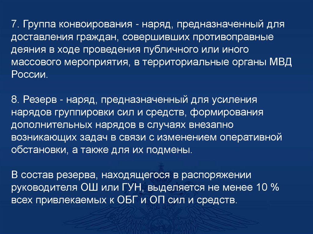 7. Группа конвоирования - наряд, предназначенный длядоставления граждан, совершивших противоправные