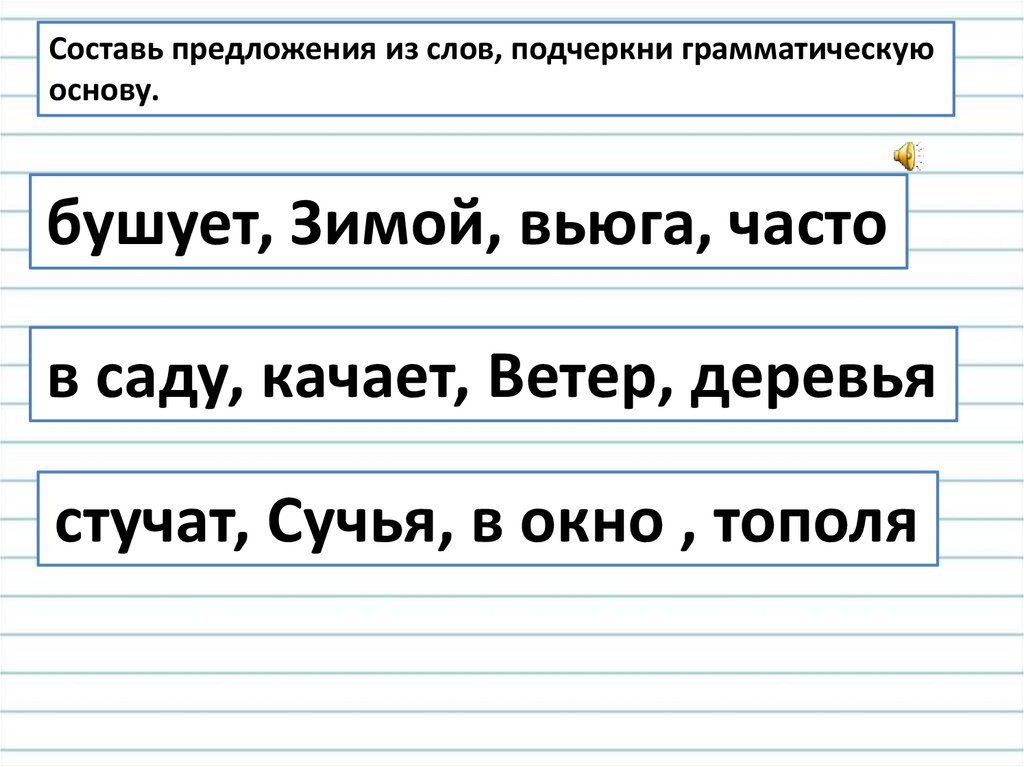 Составь предложения из слов, подчеркни грамматическуюоснову.