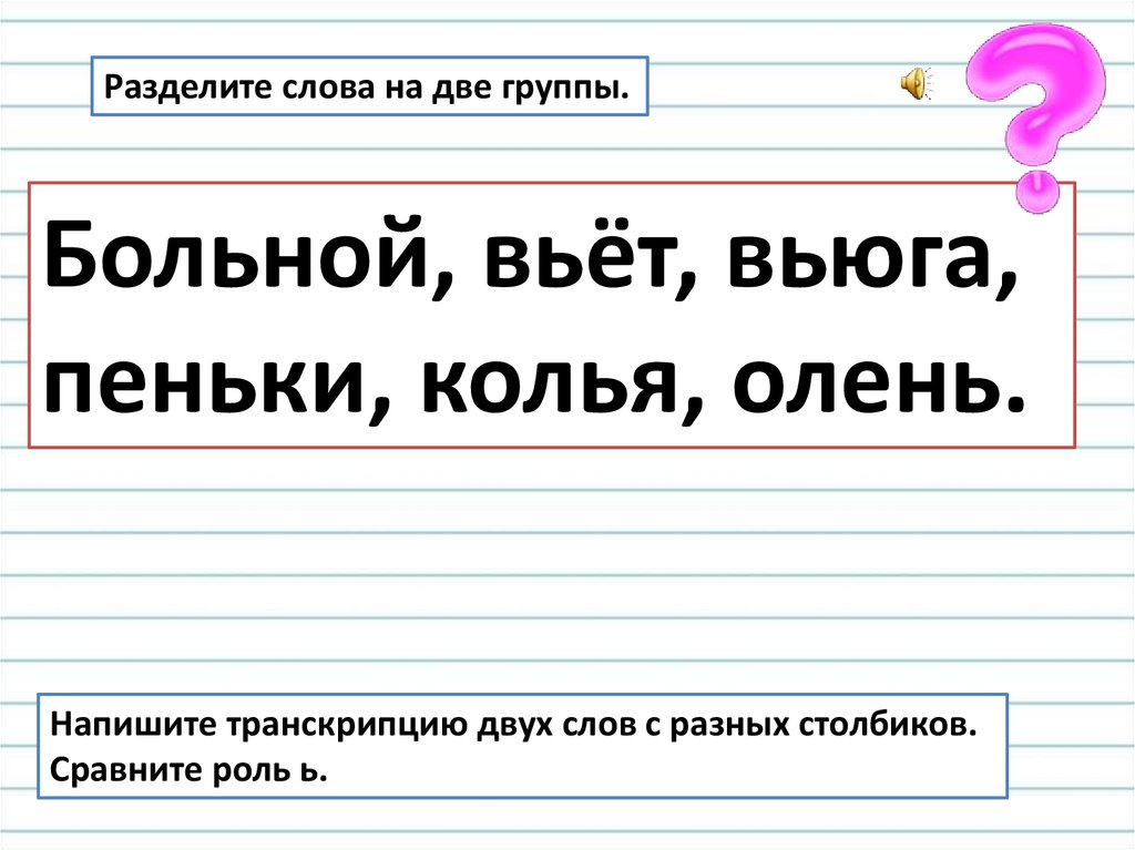 Презентация по русскому языку на тему _Правописание слов с разделительным мягким знаком_ (2 класс) Школа России