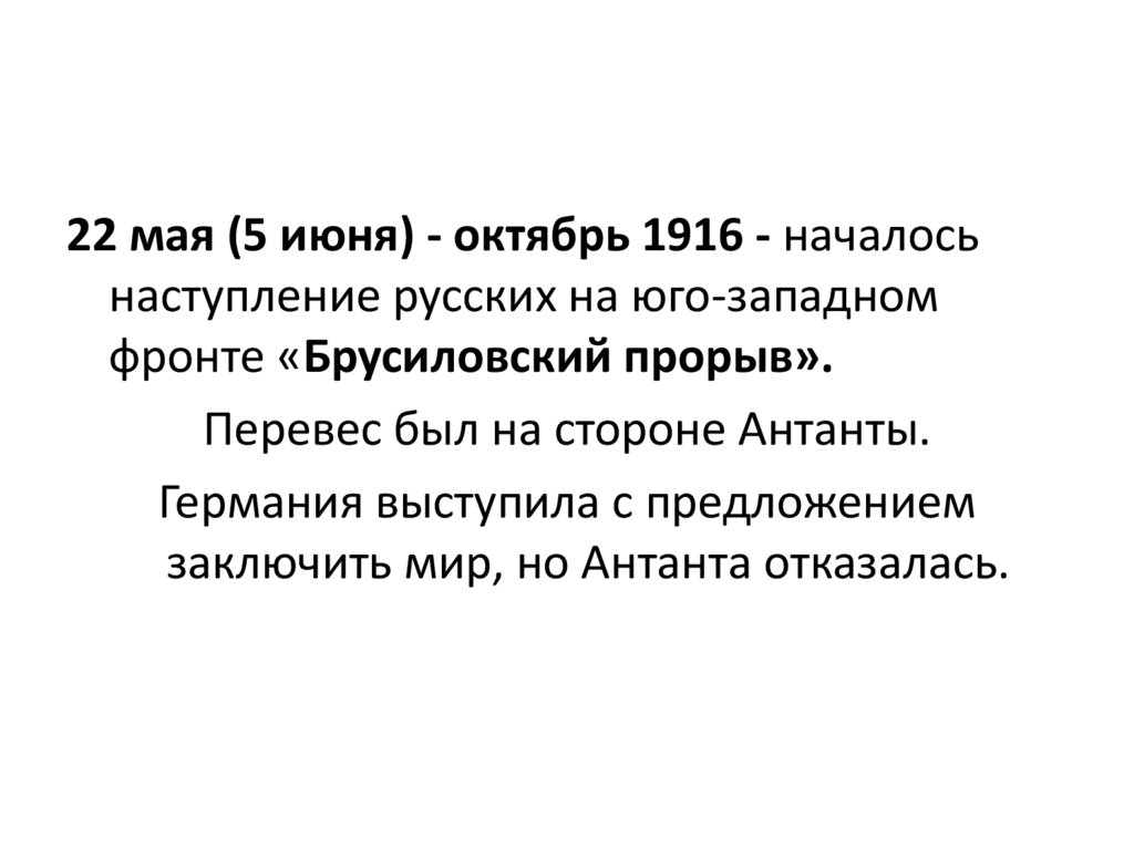 В 1915 году главной целью Четверного союза было уничтожение России. С западного
