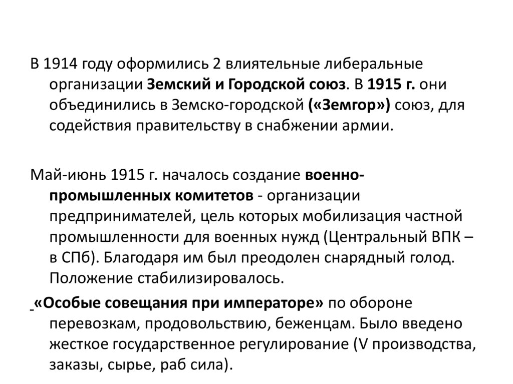 в России в условиях Первой мировой войны.