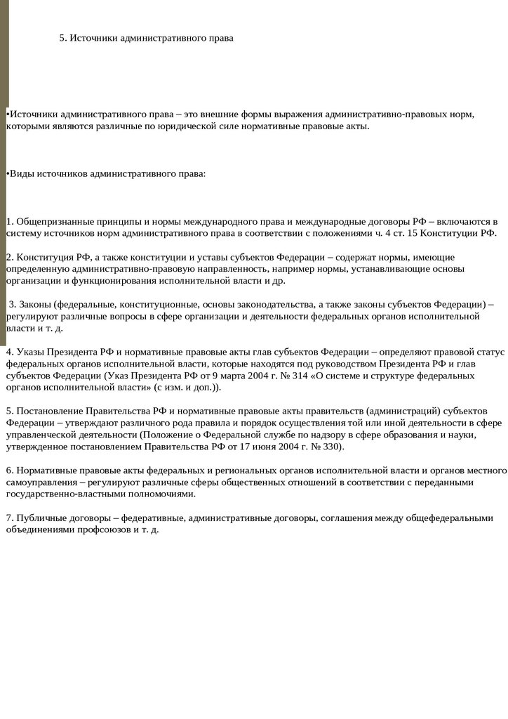 •Виды источников административного права: