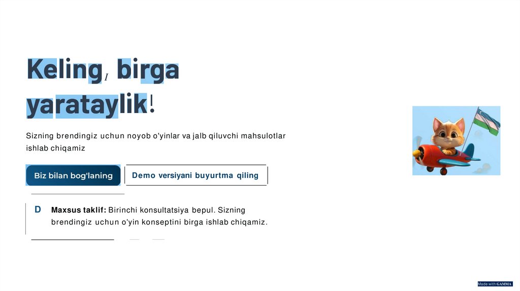 Sizning brendingiz u c h u n noyob o'yinlar va jalb qiluvchi mahsulotlar