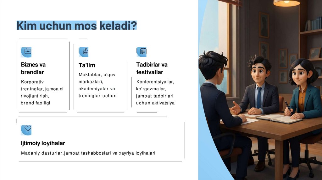 VA IJTIMOIY LOYIHALAR YARATISH.