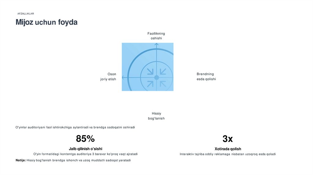 O'yinlar auditoriyani faol ishtirokchiga aylantiradi va brendga sadoqatni oshiradi