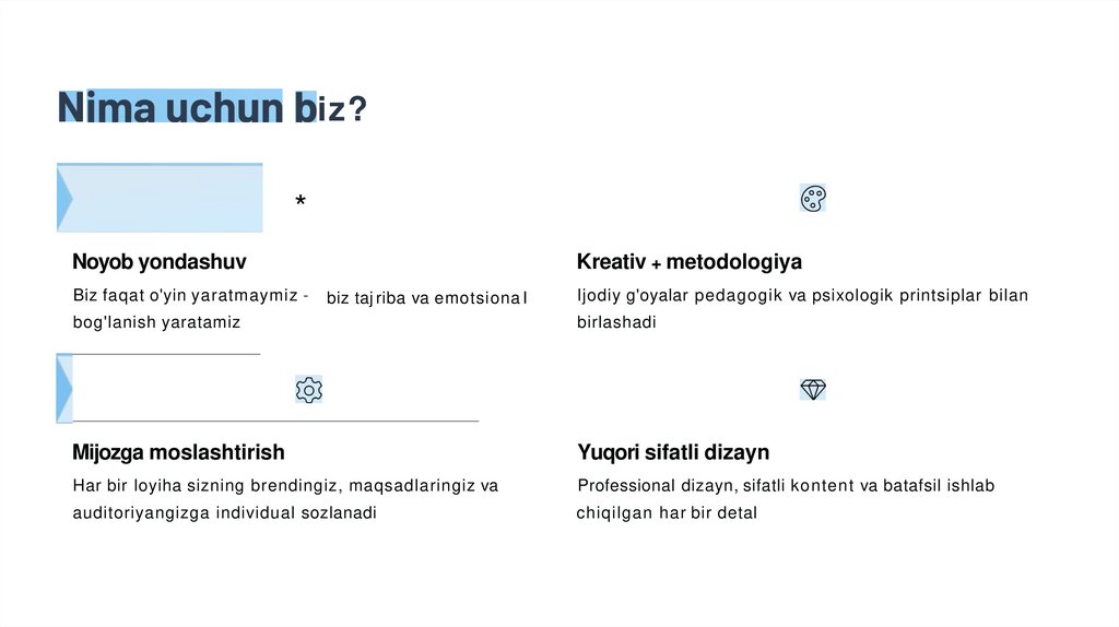 Professional dizayn, sifatli kontent va batafsil ishlab