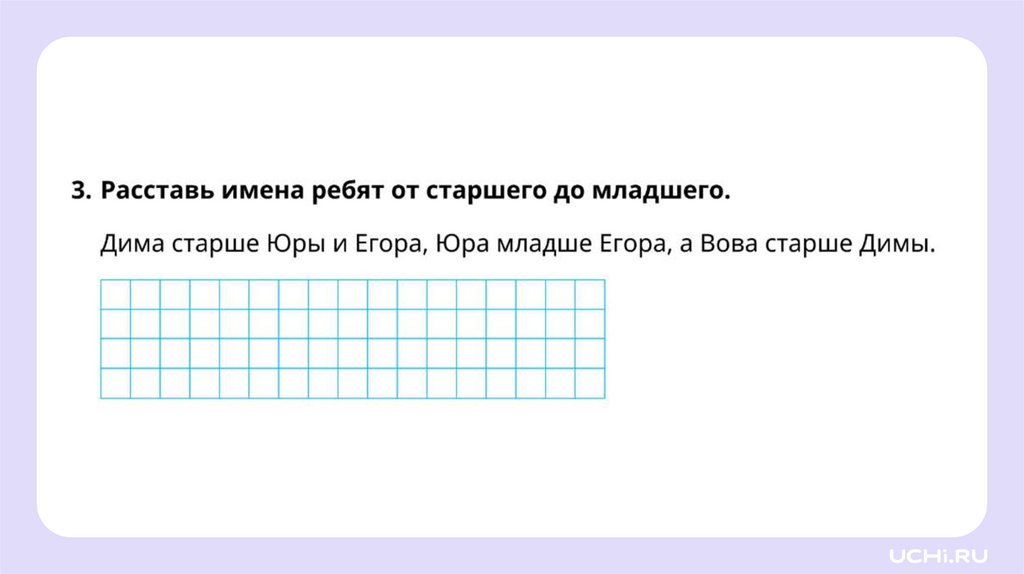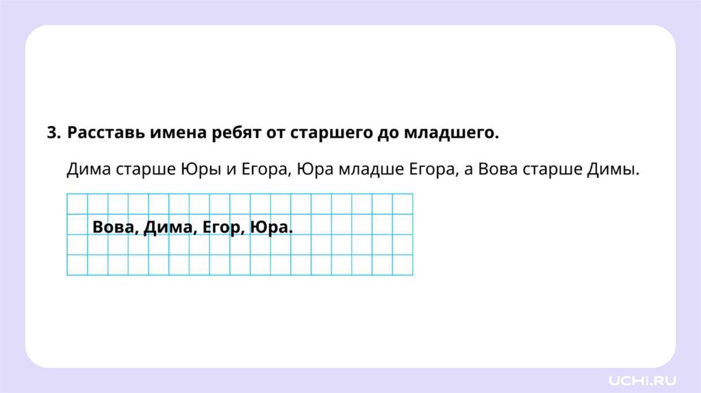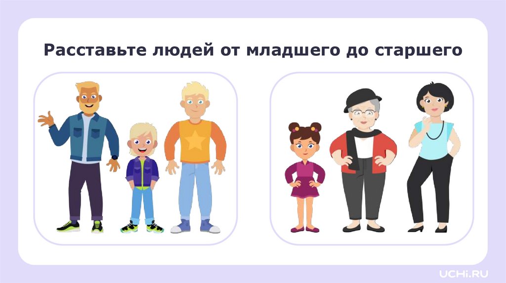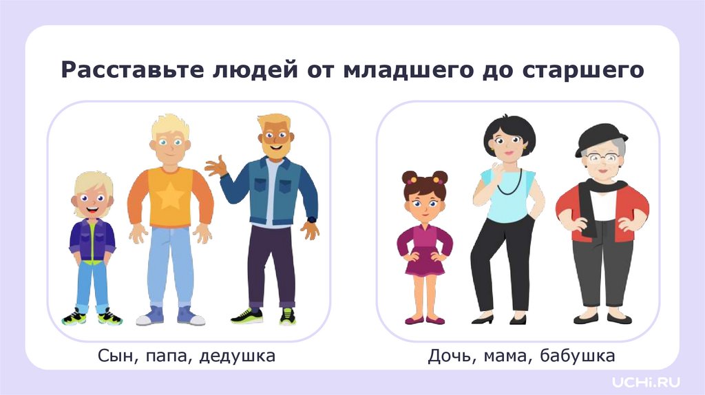 Расставьте людей от младшего до старшегоСын, папа, дедушка