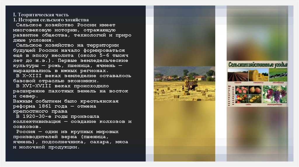 Сельское хозяйство – отрасль экономики,занимающаяся