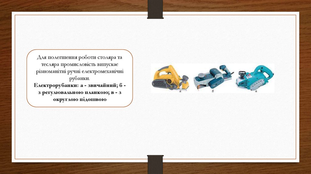 Для полегшення роботи столяра татесляра промисловість випускає