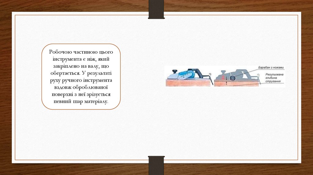 ширини 5...9 мм (проліт) 12. Передня частина прольоту під час стругання створює підбір волокон, унаслідок чого з поверхні заготовки