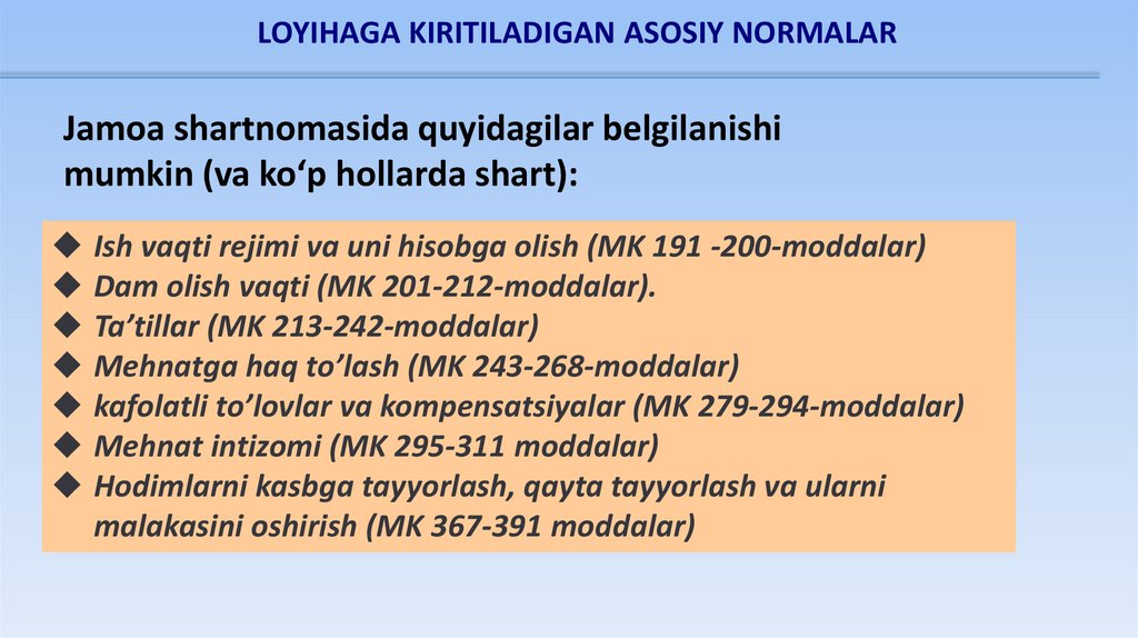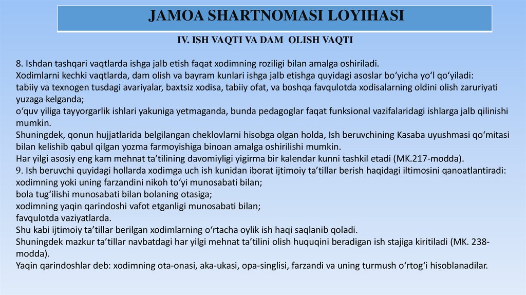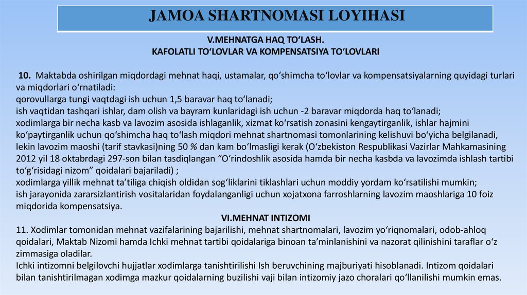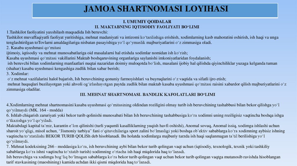 JAMOA SHARTNOMASI LOYIHASIV.MEHNATGA HAQ TO‘LASH.