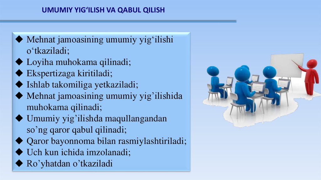 UMUMIY YIG‘ILISH VA QABUL QILISHMehnat jamoasining umumiy yig‘ilishi