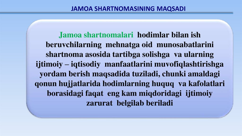 JAMOA SHARTNOMASINING MAQSADIJamoa shartnomalari hodimlar bilan ish
