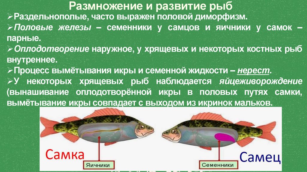 Размножение и развитие рыбРаздельнополые, часто выражен половой диморфизм.