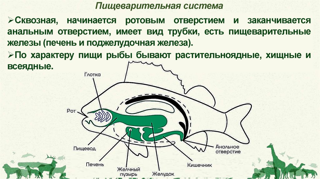 По характеру пищи рыбы бывают растительноядные, хищные и