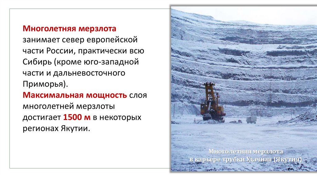 Многолетняя мерзлота занимает более 60 % территории нашей страны.