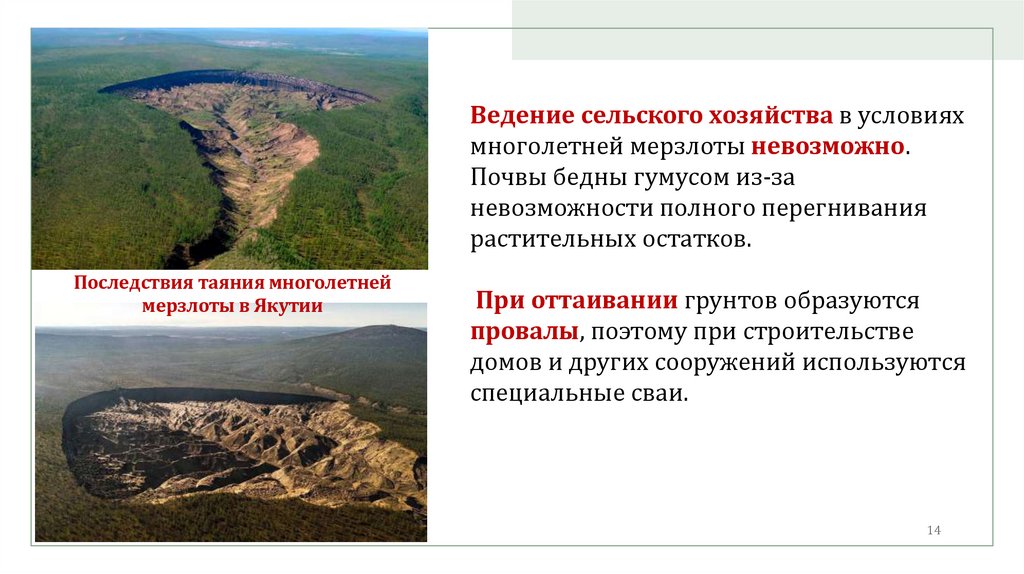 Ведение сельского хозяйства в условияхмноголетней мерзлоты невозможно.