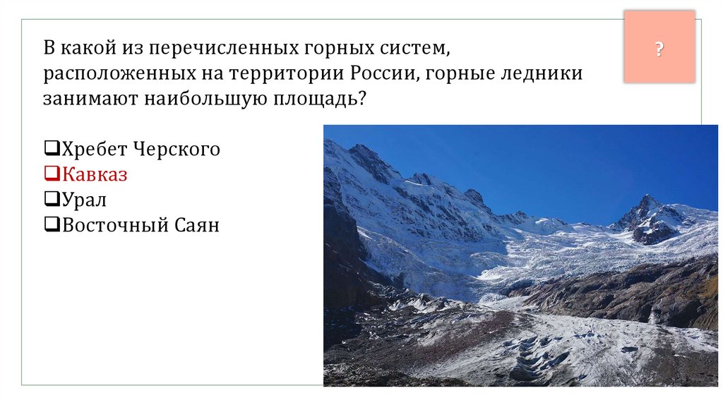 В какой из перечисленных горных систем,расположенных на территории России, горные ледники