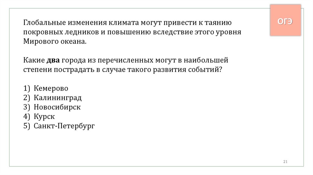 Глобальные изменения климата могут привести к таяниюпокровных ледников и повышению вследствие этого уровня