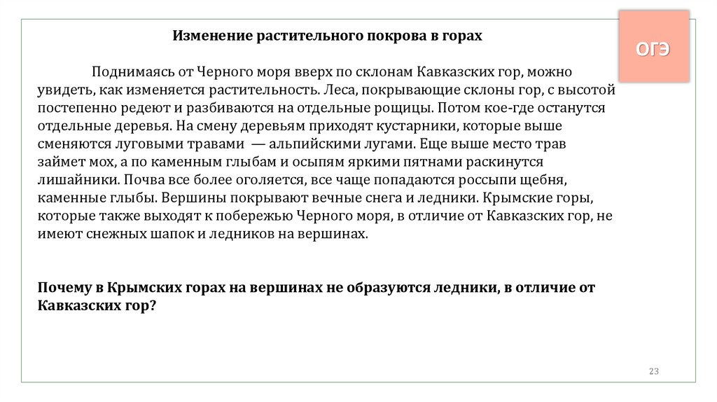 увидеть, как изменяется растительность. Леса, покрывающие склоны гор, с высотой