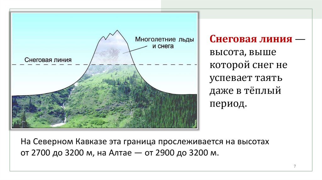 Высотная поясность в горах КавказаСмена природных комплексов с высотой в горах происходит