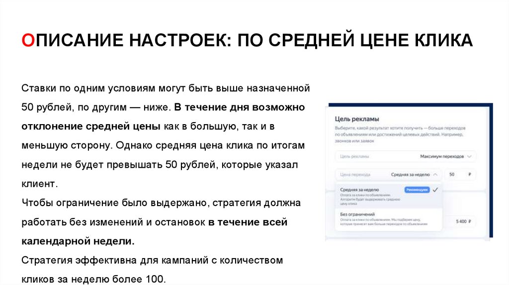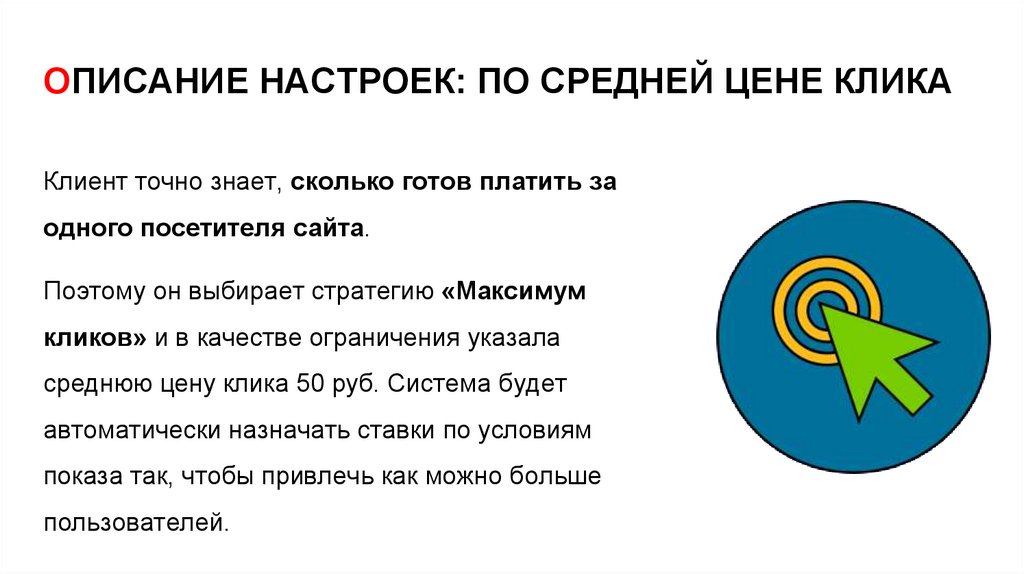 ОПИСАНИЕ НАСТРОЕК: ПО СРЕДНЕЙ ЦЕНЕ КЛИКАКлиент точно знает, сколько готов платить за
