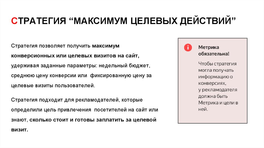 СТРАТЕГИЯ “МАКСИМУМ ЦЕЛЕВЫХ ДЕЙСТВИЙ”Стратегия «Максимум целевых действий»