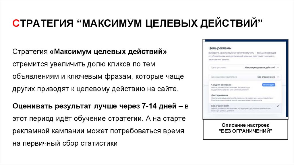 СТРАТЕГИЯ “МАКСИМУМ ЦЕЛЕВЫХ ДЕЙСТВИЙ”Стратегия позволяет получить максимум
