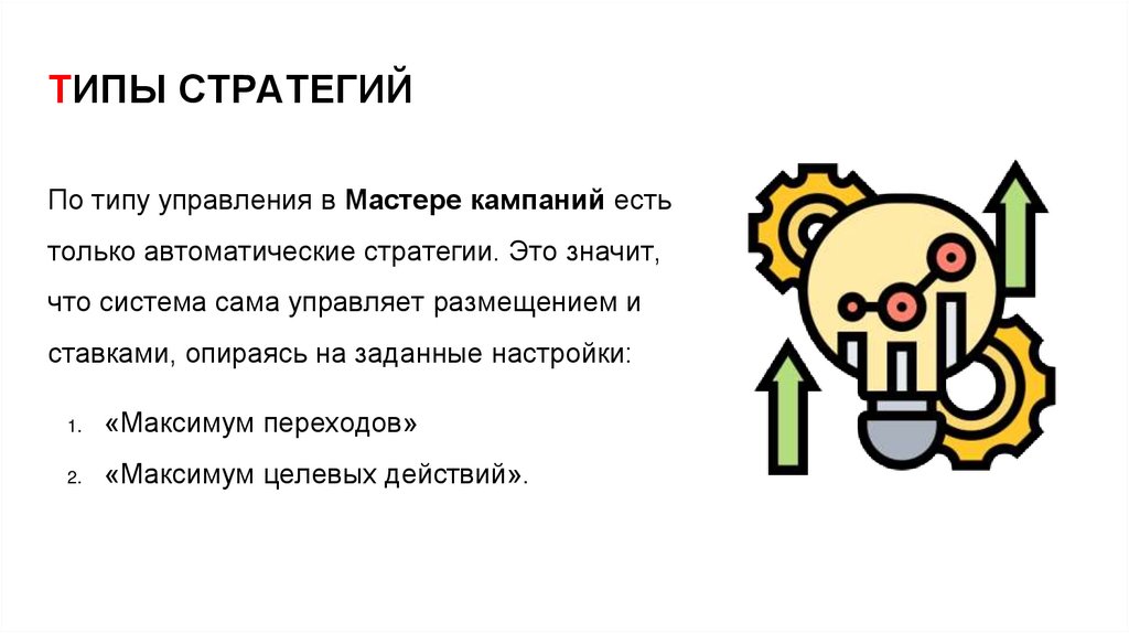 ТИПЫ СТРАТЕГИЙПо типу управления в Мастере кампаний есть