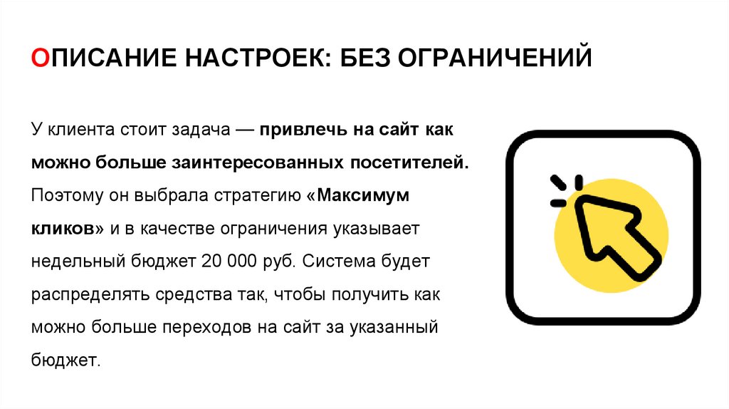 ОПИСАНИЕ НАСТРОЕК: БЕЗ ОГРАНИЧЕНИЙУ клиента стоит задача — привлечь на сайт как